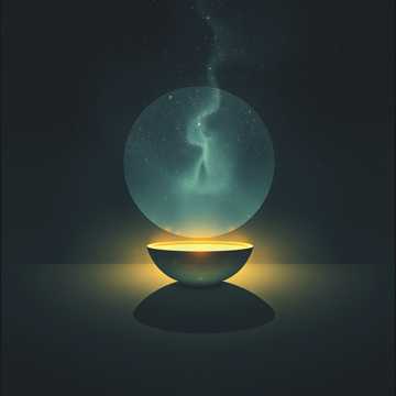 Atmospheric pads, distant choir textures in background.