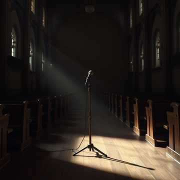 MAN VS. WOMEN INTERROGATION BOTH GENDERS PRESENT. High-intensity southern revival-style interrogation number at 120–130 bpm driven by handclaps, stomp rhythms, sharp organ stabs, and rapid percussive accents, preacher vocal delivered in rhythmic sermon cadence with escalating tempo and breathless call-and-response patterns, female voices entering in layered dissonant harmonies that gradually unify into strong grounded unison, dynamic chaotic but tightly structured, frequent rhythmic breaks for shouted “Testify!” moments, tension building through overlapping vocal lines and syncopation rather than heavy orchestration, tone feverish, accusatory, theatrical, and electrically confrontational, blending gospel revival energy with dark chamber musical intensity.